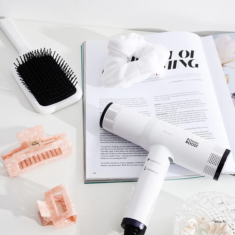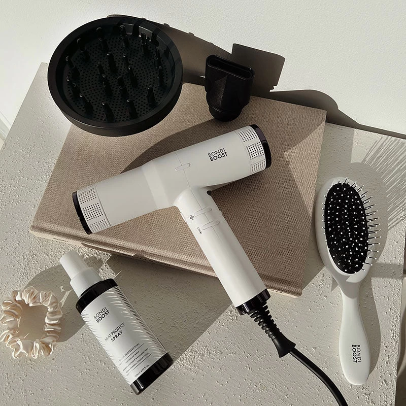 Enjoy 4X fast drying with the BondiBoost Sonic Dryer. This ultra-lightweight professional hair dryer combines Advanced Ion Technology with 4 heat & 3 speed settings to effortlessly dry and style any hair type and texture. Enhanced with a cool shot function to set your style after you dry, and elevated with a smart memory function to store your preferred heat and speed settings, the Sonic Hair Dryer is your secret weapon for creating salon-worthy styles in a flash.