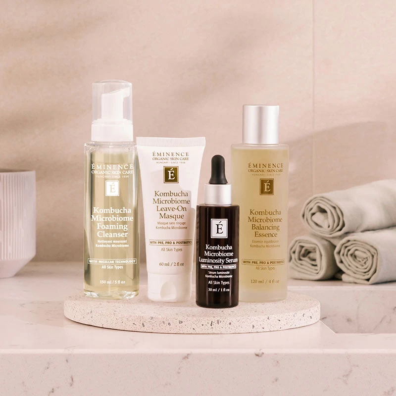 Illuminate your daily ritual with the Eminence Kombucha Microbiome Balancing Essence. Formulated with a blend of pre, pro and postbiotics, this nourishing essence helps to enhance luminosity and restore your skin’s natural balance. Elevated with antioxidant white tea and jasmine flower, this vegan-friendly formula instantly soothes dry, dull skin for a healthy-looking glow. Suitable for all skin types.