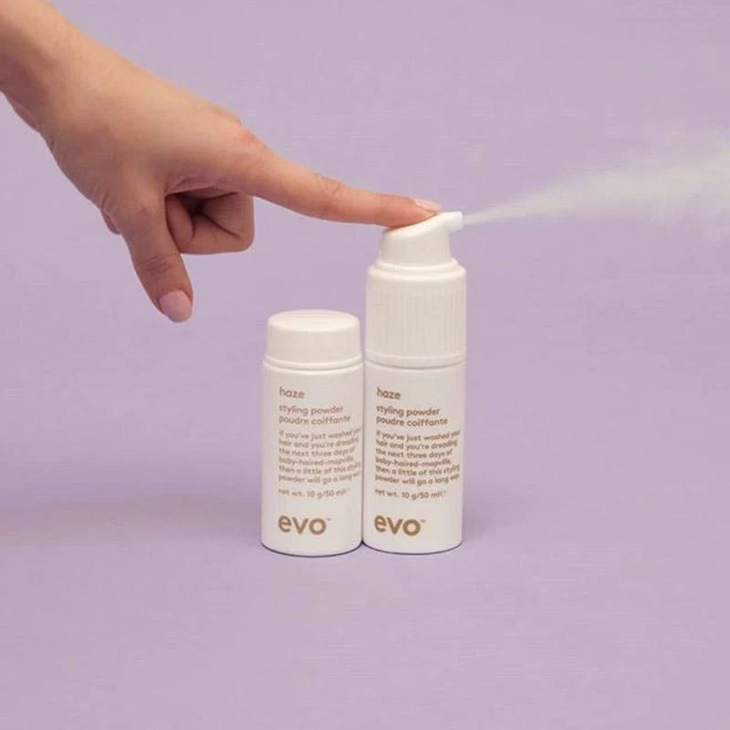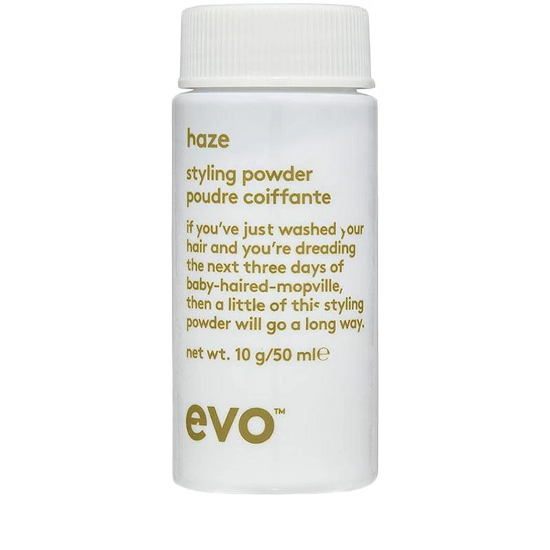 evo Haze Styling Powder Spray can be applied to dry hair any time without the need of heat to create volume and texture. Suitable for all hair types, especially fine, limp hair, this lightweight formula provides touchable texture and volume without the need for heat. It sets to a matte finish and brushes out easily.