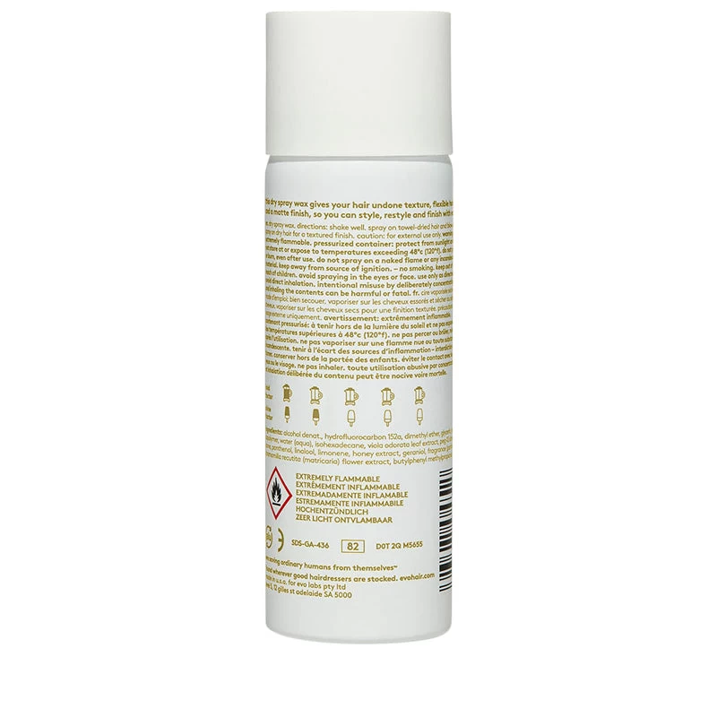 evo Shebang-A-Bang Dry Spray Wax is a paraben-free styling spray that provides an ultra-fine mist for easy and even application. Suitable for all hair types and lengths, this travel-friendly spray creates workable, pliable texture with a satin finish, allowing you to easily build styles.