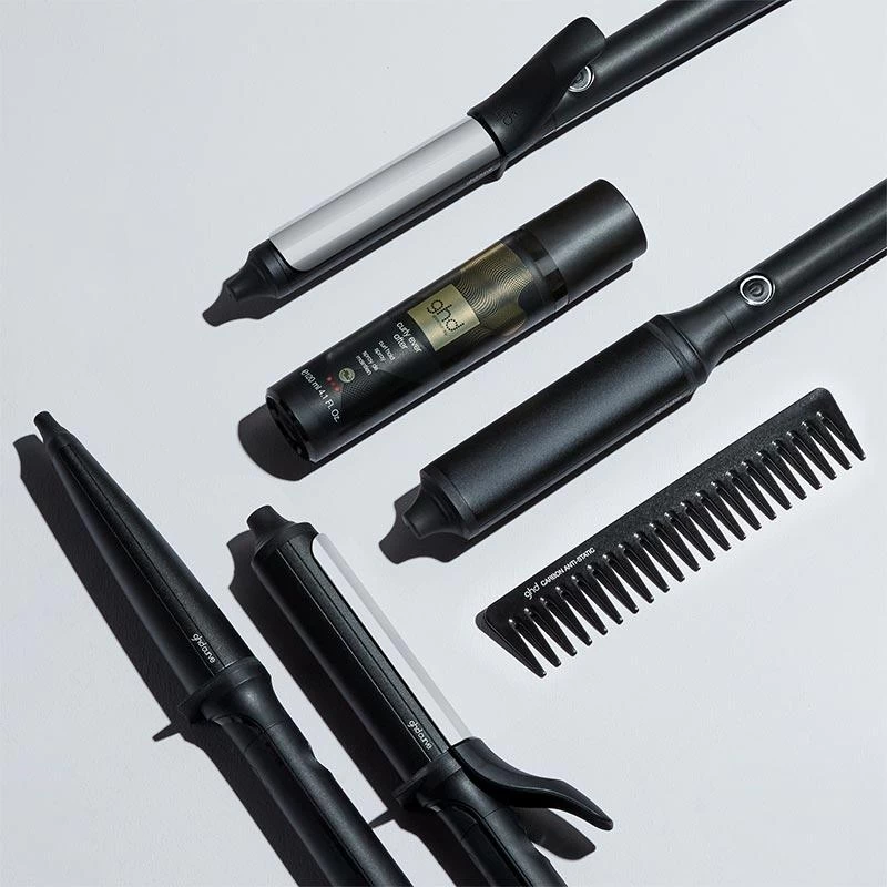 Master relaxed, beachy styled waves and natural-looking tousled curls with this uniquely tapered styling wand ideal for all hair types. The 28mm-23mm gradual barrel creates 5-8 second curls whilst a cool tip for styling comfort and ease allows you to safely hold the styler in place as you curl. With a professional length swivel cord and peace of mind automated sleep mode, this heated curl wand gives you flexible styling. The ultra-zone technology maintains an optimal styling heat of 185°C which locks in your curls and look, whilst respecting the health of your hair for consistent styling. Soften your curls with the ghd Paddle Brush after setting in place with ghd Curly Ever After.