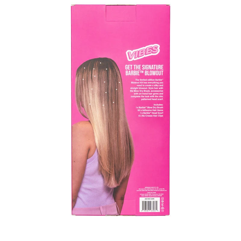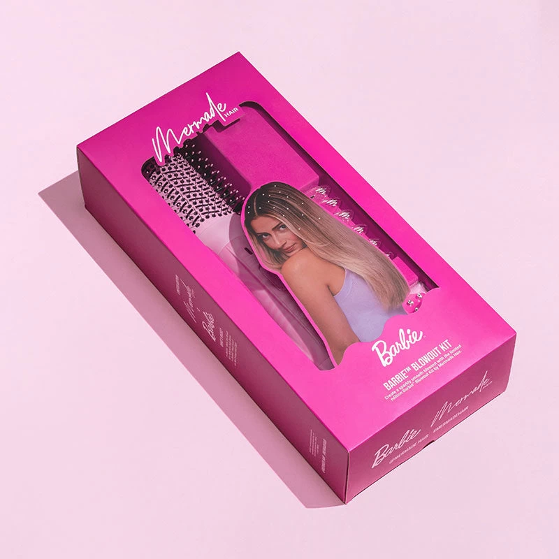 Get the signature Barbie™ blowout with the limited edition Barbie™ Blowout Kit by Mermade Hair. Featuring everything you need to create a silky, straight and absolutely iconic straight blowout, this styling kit is suitable for all hair types and lengths and allows you to create dreamy, sleek hair in seconds.