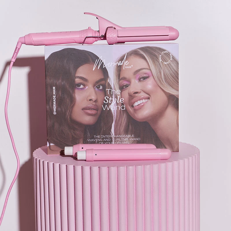 Mermade your way with this interchangeable, one-stop curling and waving wand from Mermade Hair. Featuring three detachable heads, this styling kit has been specially curated to take your hair game to the next level! From coveted curls to beachy waves, all you have to do is decide on a vibe, and your dream hairstyle is just seconds away. Each attachment is made with ionic ceramic so your hair is protected from unnecessary heat damage, while your curls are long-lasting and super shiny. With endless styling possibilities, the choice is yours with the Mermade Hair Style Wand.
