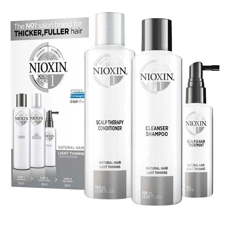 The Nioxin 3D Care Trial Kit System 1 (for natural hair with light thinning) includes: