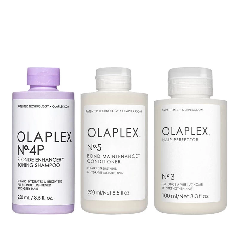 Repair, hydrate and brighten blonde, colour treated hair with this value packed trio from Olaplex.
