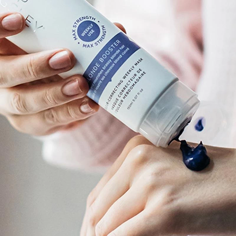 This weekly colour-correcting mask helps to nourish and clarify brassy bleached blonde hair while improving hair’s resilience. Enriched with violet micro-pigment and enhanced with Hydrolyzed Keratin, Hydrolyzed Oats & Vegetable Protein, this multi-tasking mask helps to boost moisture and increase hair strength while toning and neutralising blonde, grey & bleached hair.