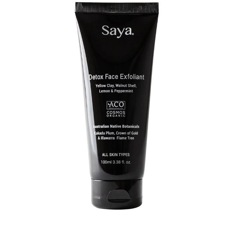 Saya’s Detox Face Exfoliant is an energising face scrub made with French Yellow Clay, Papaya and finely ground Walnut Shells to effectively remove dead skin cells and purify the skin. It smoothes and revives dull skin and improves overall skin texture. Scented with detoxifying Peppermint oil and refreshing Lemon oil. Containing Aloe Vera Juice, a superb multi-functional active rich in Polysaccharides, it helps to retain moisture and soothe the skin.