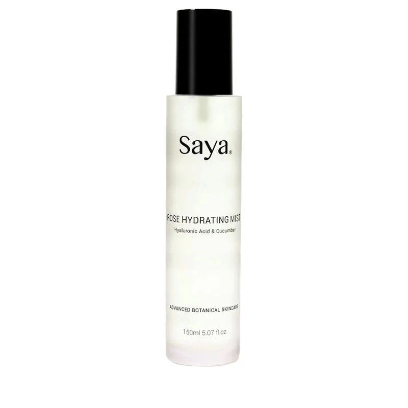 Saya’s Rose Hydrating Mist is formulated with a blend of Rose Water, Witch Hazel, multi-weight Hyaluronic Acid, Pentavitin®, Aloe Vera and soothing Cucumber to soothe, balance and refresh the skin, providing up to 72 hours of hydration.